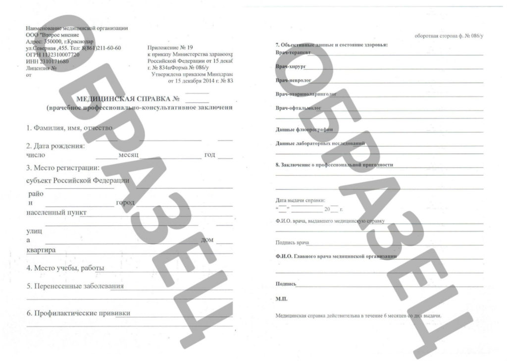 Документ может быть получен в поликлинике по месту проживания или в частном медучреждении. Будьте готовы к длинным очередям, неудобному графику специалистов, под который придётся подстраиваться. Оформление медицинского заключения может растянуться на несколько дней. Проще и быстрее купить справку с помощью сервиса Medoi. Заказывая её у нас, вы экономите время и получаете медицинское заключение о профпригодности с официальными печатями и подписями реальных врачей в день обращения.